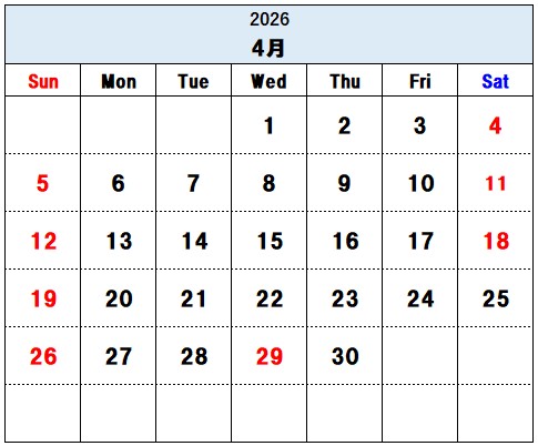 4月休業日のお知らせ